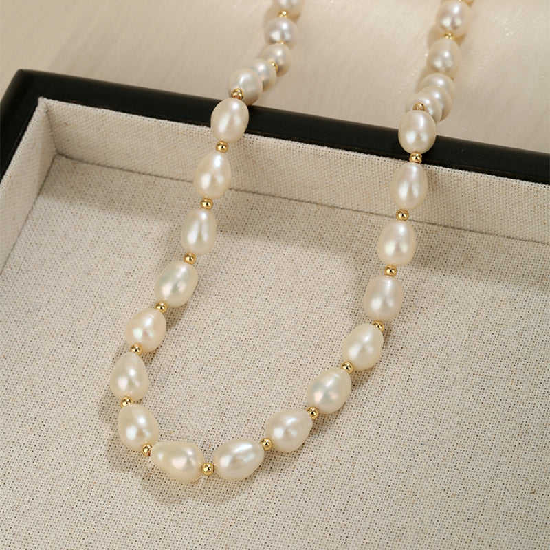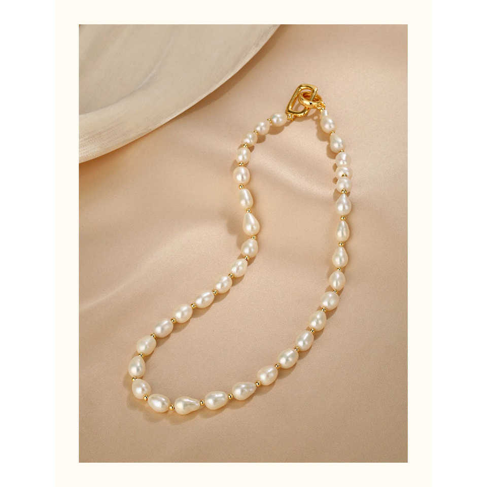 สร้อยคอมุกบาโรกธรรมชาติสุดหรูสำหรับผู้หญิง WENCHI น้ำหนัก 450 กรัม ดีไซน์เรียบง่ายแบบซ้อนไม่สม่ำเสมอ