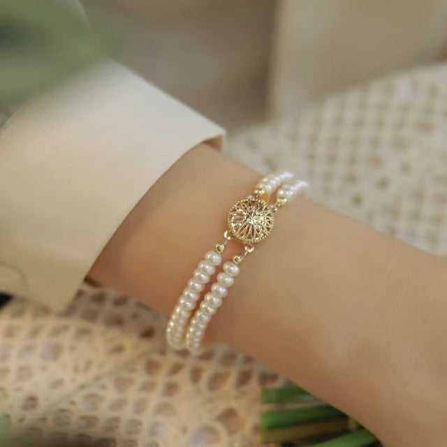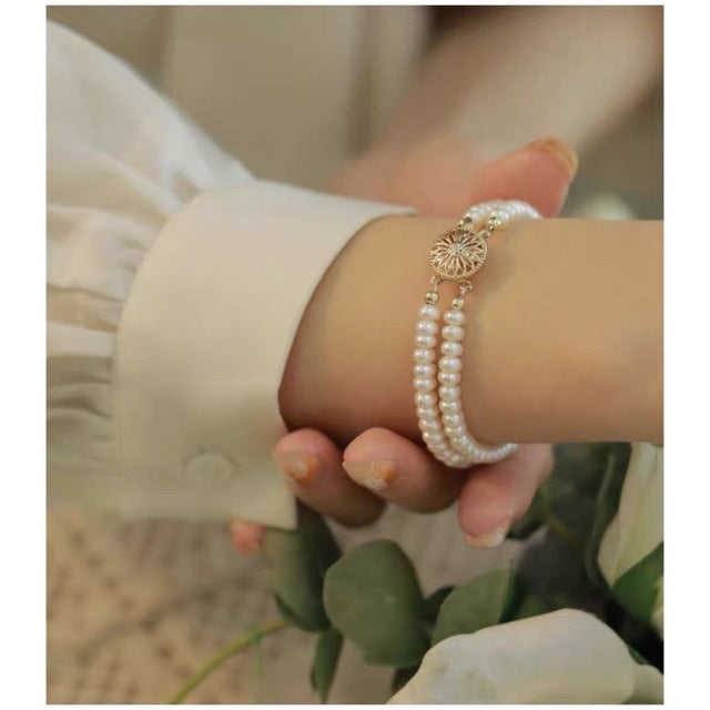 สร้อยข้อมือไข่มุกคู่เกรด AAA สุดหรูสำหรับผู้หญิงจาก WENCHI ไข่มุกน้ำจืดสีเย็นธรรมชาติ สองชั้น ขนาด 4-5 มม. รูปทรงลูกคิด