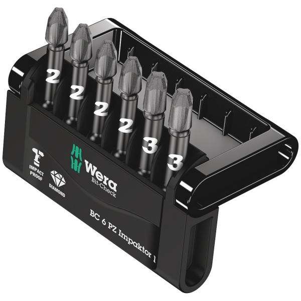 Wera-ชุดดอกสว่าน05057692001 Pozidriv impaktor (6ชิ้น) -เม็ดมีด4013288157737 EAN สำหรับการขันสกรูชุดบิต