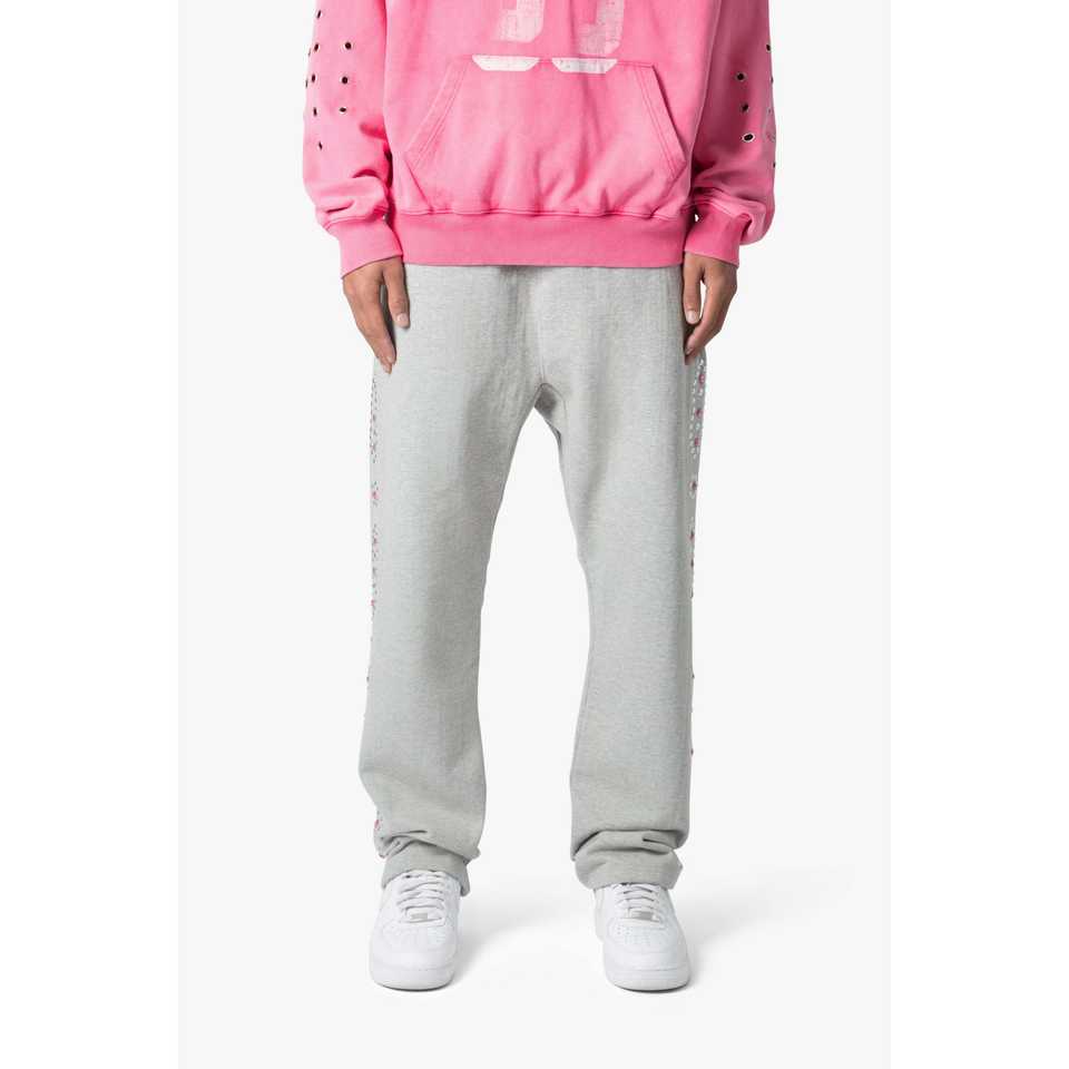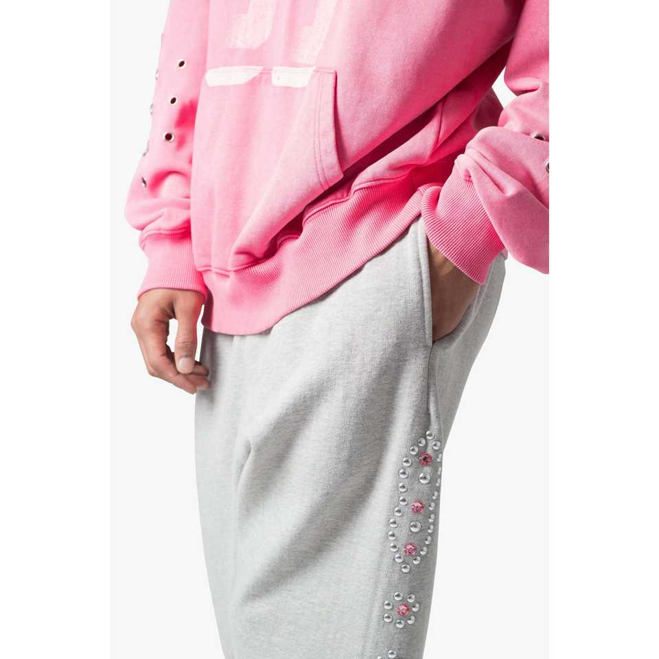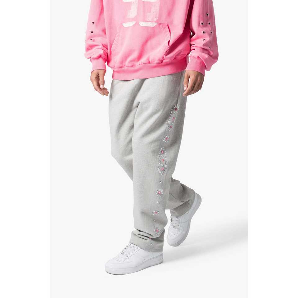 กางเกงวอร์ม West StudDED ทรงหลวม สีเทา ผ้าฝ้าย 100% 360gsm