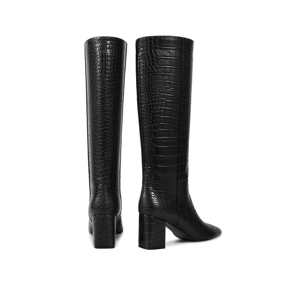 Wetkiss 2024รองเท้าบูทหุ้มข้อเข่าเข่าของผู้หญิงลายเสือดาวทำจากหินบล็อกจระเข้ที่สวยงาม