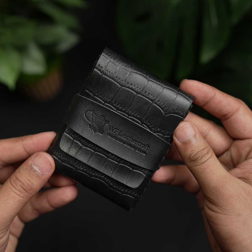กระเป๋าสตางค์หนังวัวแท้ลายจระเข้สีดำ WF Leathercraft No.101 ออลอินวัน แบบเย็บมือ ลายนูน สำหรับทุกเพศ ใช้งานได้หลากหลาย
