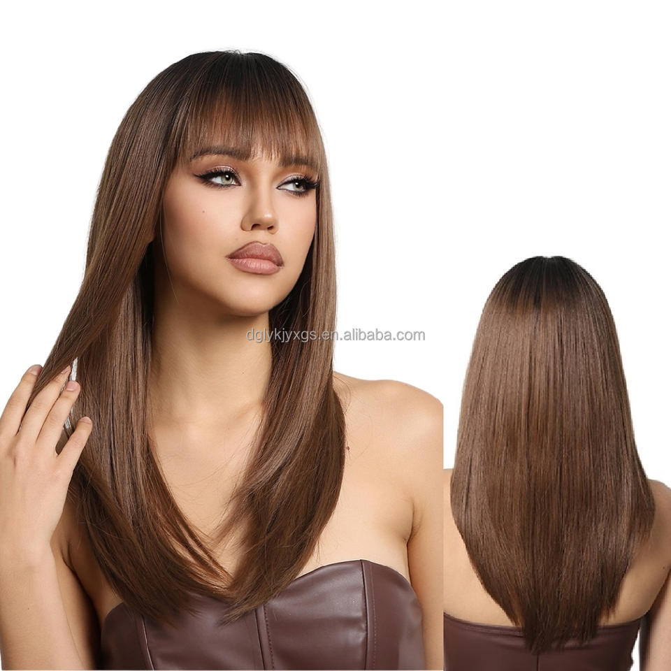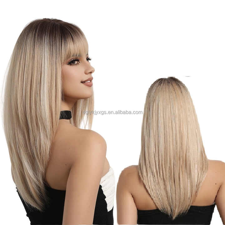 วิกผมสังเคราะห์แบบเต็มศีรษะ รุ่นใหม่ WH28 ปี 2024 แบบมีหน้าม้าซีทรู สีออมเบร น้ำตาลทอง สำหรับผู้หญิง