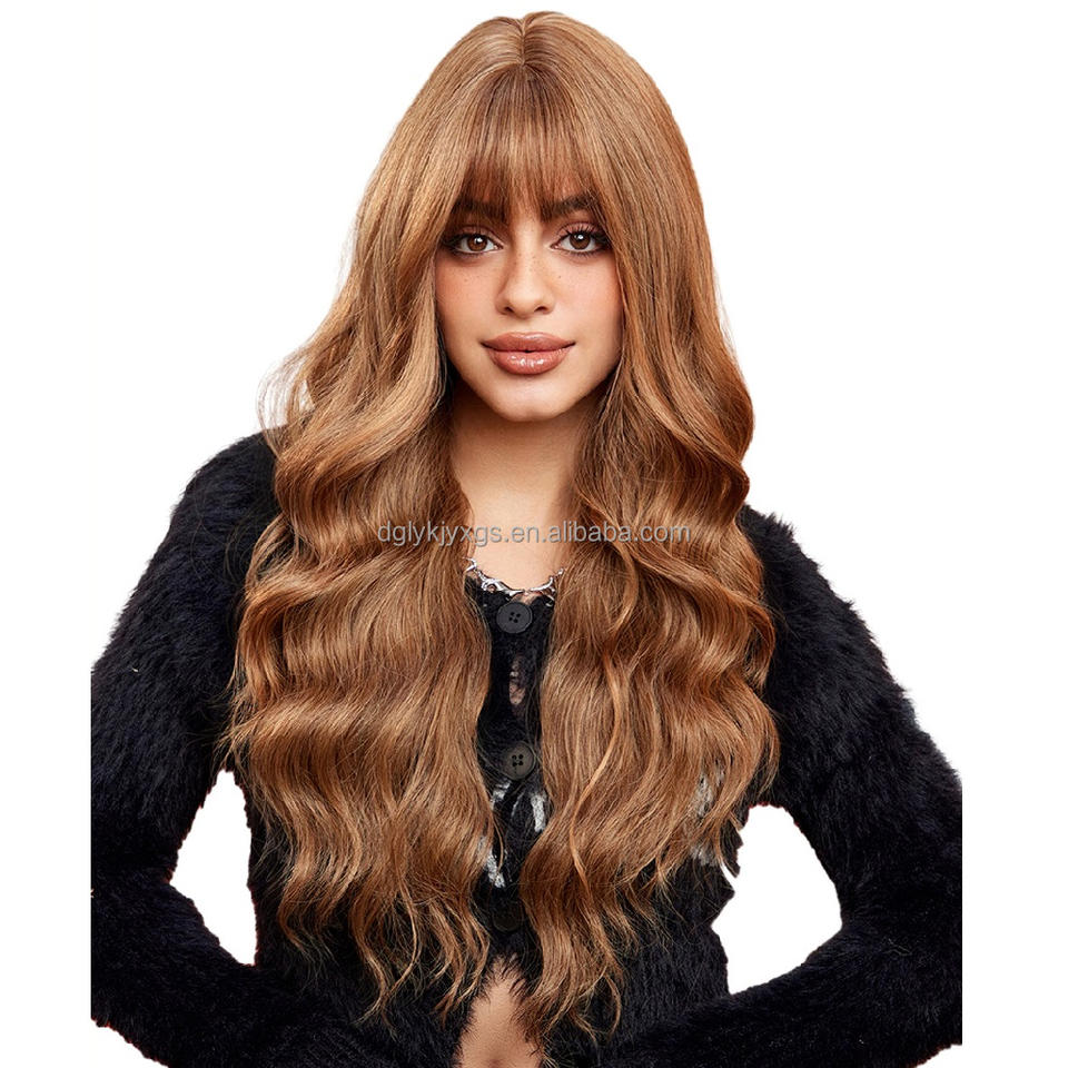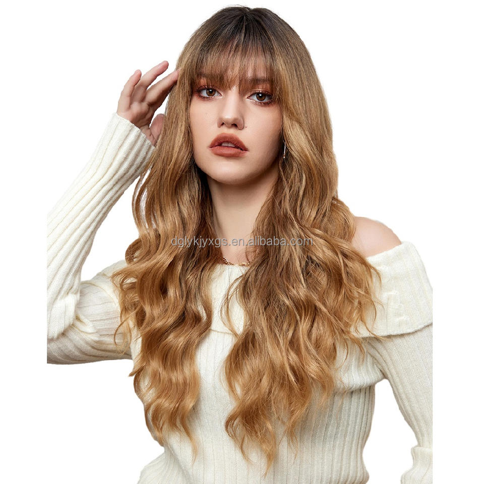 WH33วิกผมลอนคลื่นน้ำ26นิ้ว, วิกผมลอนยาวเส้นใยสังเคราะห์สีน้ำตาลทองเลือกย้อม15สีสำหรับผมผู้หญิง
