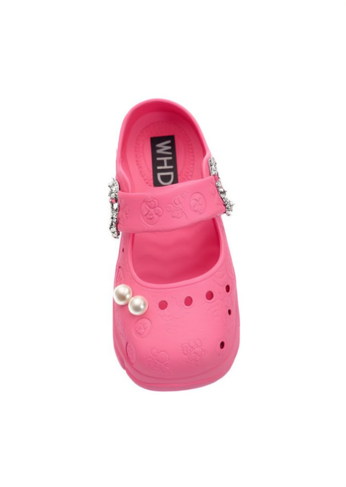 รองเท้าแตะแบบสวม WHD ประดับมุก สไตล์แมรี่เจน รองเท้าฤดูร้อนสำหรับผู้หญิงและเด็กผู้หญิง ไซส์ 27 หัวปิด วัสดุพลาสติก