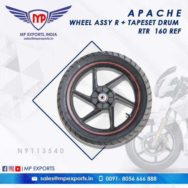 ชุดล้อพร้อมยางและดรัม RTR 160 สำหรับรถมอเตอร์ไซค์ TVS APACHE RTR 2W อะไหล่มีจำหน่ายในราคาที่เข้าถึงได้