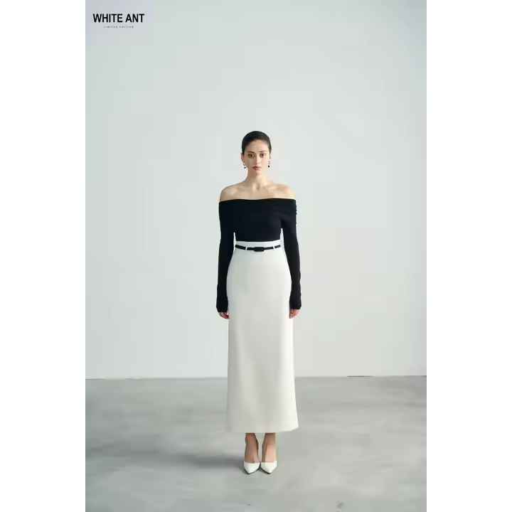 กระโปรงทรงเอไลน์สีขาวสำหรับผู้หญิงดีไซน์ยาวยั่งยืนพร้อมเข็มขัดผลิตในเวียดนามโดยโรงงาน OEM