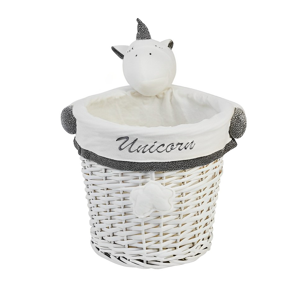 ตะกร้าหวายสีขาวลายยูนิคอร์น 1 ชิ้น 28x26 ซม.