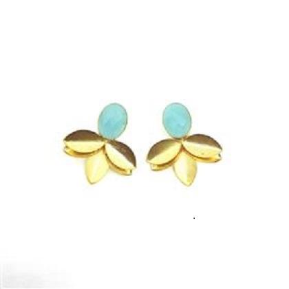 ต่างหูพลอยแคลเซโดนีสีฟ้ารูปดอกไม้ ดีไซน์ทันสมัย ขายส่ง