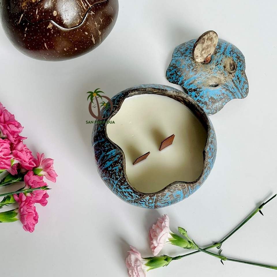 เทียนมะพร้าวแบบแฮนด์เมดทรงชามเปลือกมะพร้าวใช้ง่ายเทียนมะพร้าวมีกลิ่นหอมสำหรับเป็นของขวัญคริสต์มาส