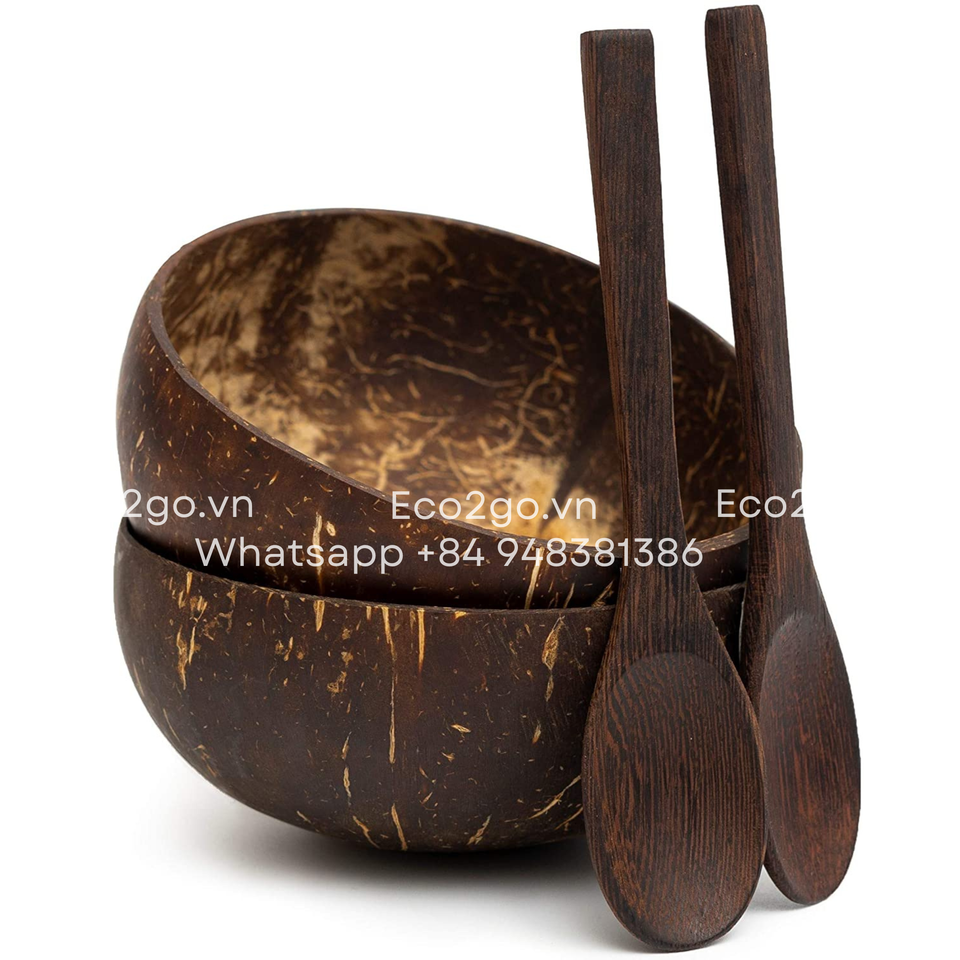 ชามกะลามะพร้าวแบบธรรมชาติชามและช้อนทำจากเวียดนามชามกะลามะพร้าว