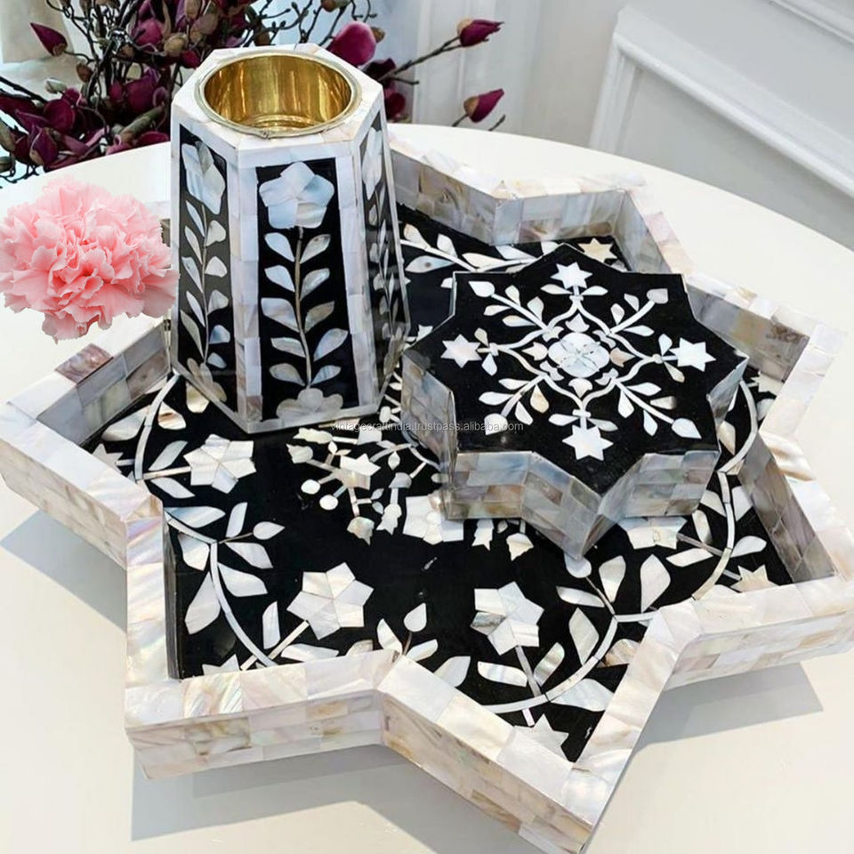 ถาดเสิร์ฟแม่มุกดาวงานฝีมือธรรมชาติสำหรับ Eid Ramadhan ของขวัญให้กล่องกล่องและเตา