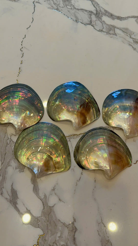 เปลือกหอยมุกธรรมชาติขายส่ง | แผ่นกระจกเงาสีรุ้งขัดเงาสูง | จำหน่ายสินค้าจำนวนมาก ขนาด 15-30 ซม.
