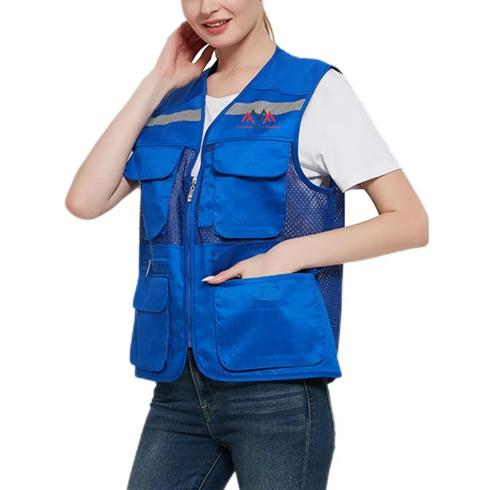 เสื้อกั๊กกันหนาวมีหลายช่องซิปตาข่ายสะท้อนแสงดีไซน์ตามสั่ง