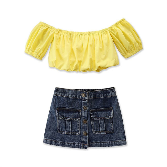 WHS04 ชุดเสื้อผ้าฤดูร้อนสำหรับเด็กผู้หญิงเสื้อสีแดง + กางเกงยีนส์กางเกง 2 ชิ้นชุดเด็กเด็กแฟชั่นกางเกงปักเสื้อผ้าเด็กผู้หญิง