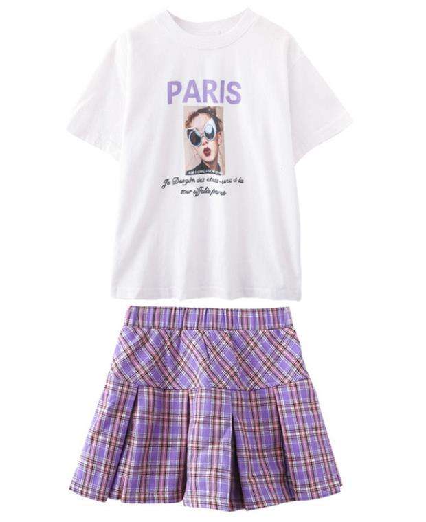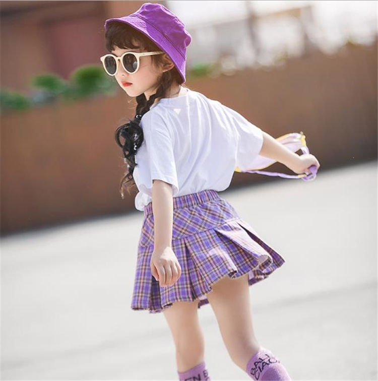 WHS07เซ็ตเสื้อผ้าสำหรับเด็กผู้หญิงเสื้อผ้าแนวสปอร์ตสีกรมท่า + กระโปรงเด็กผู้หญิงชุดกีฬาสำหรับเด็กวัยรุ่น