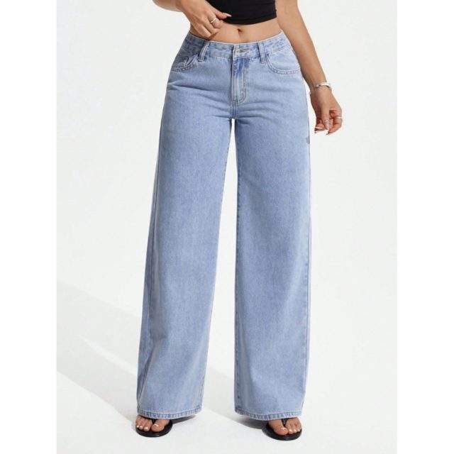 Fit Type: Wide Leg/Loose Fit, Waist Type: High Waist, Fabric: Stretch Denim (Cotton + Stretch Denim), Length: Full Length (Approx. 40 inches), Closure Type: Zipper Fly with Metal Button, Pattern Type: Solid/Plain, Pocket Type: 5-Pocket Classic Design, Stitching: Double-Needle Durable Stitch, Details: Clean Look/Minimalist Finish/Premium Thread Work, Fabric Features: Soft Stretch, Eco-Friendly, Durable, Breathable, Wash Type: Enzyme Wash/Soft Finish, Usage: Casual Wear, Street Style, Daily Comfort.