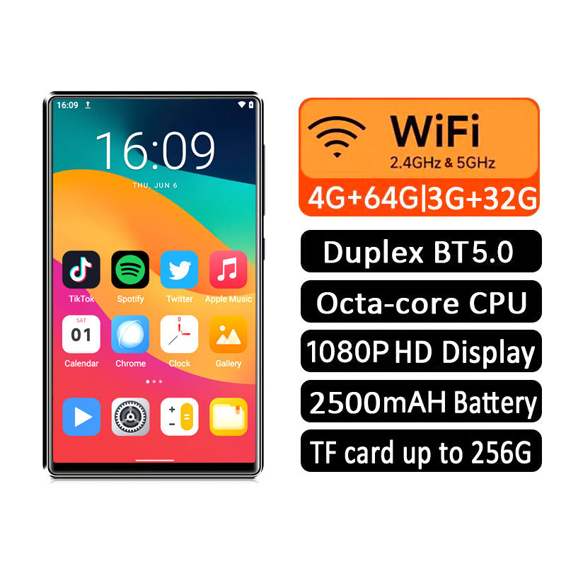 เครื่องเล่น MP3 ขนาด 5.0 นิ้ว พร้อม WIFI และบลูทูธ รองรับการเล่น E-Book/บันทึกเสียง/ดูรูปภาพ/วิ่งดูวิทยุ FM/เล่นไฟล์ภายนอก/ลำโพงภายนอก/รองรับไฟล์ WAV