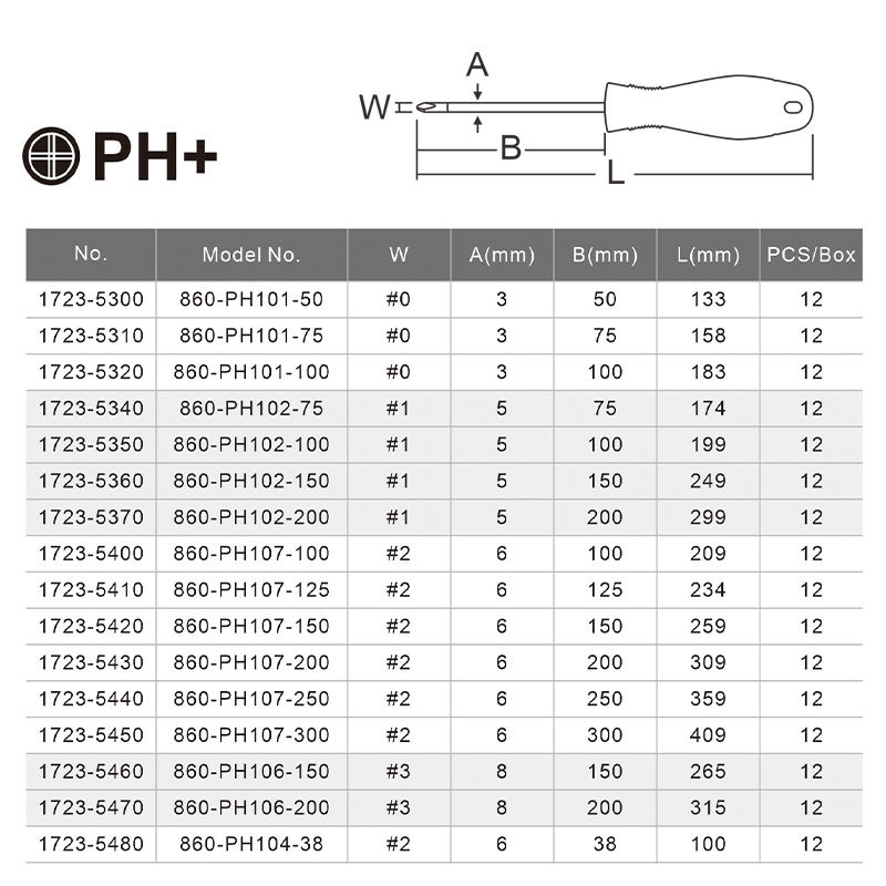 Phillips #1, Diameter 5mm x Shaft Length 200mmขนาด