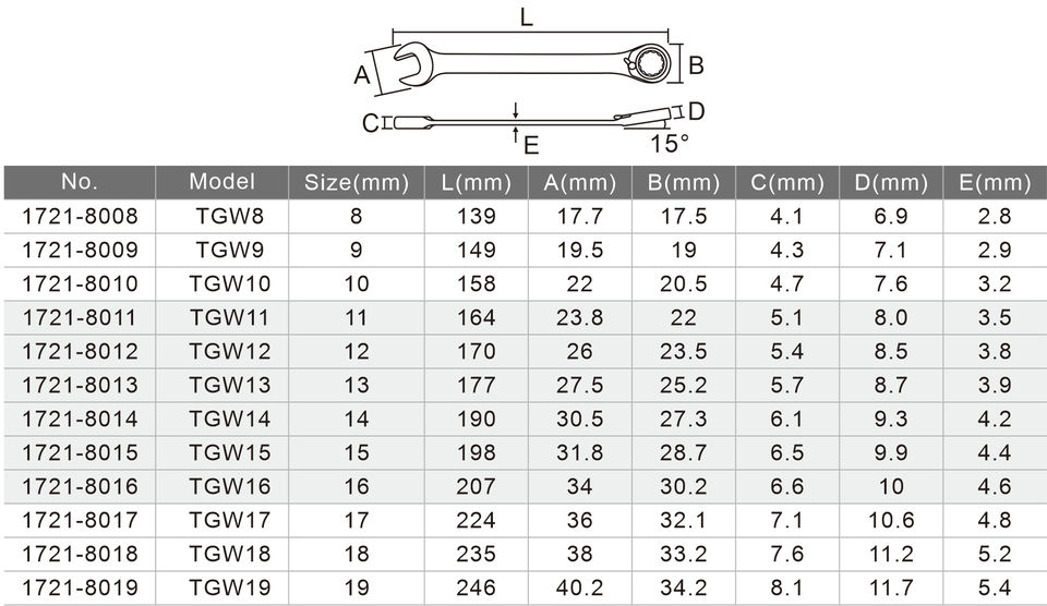 หัวมุมออฟเซ็ต:หัวงอ15 °