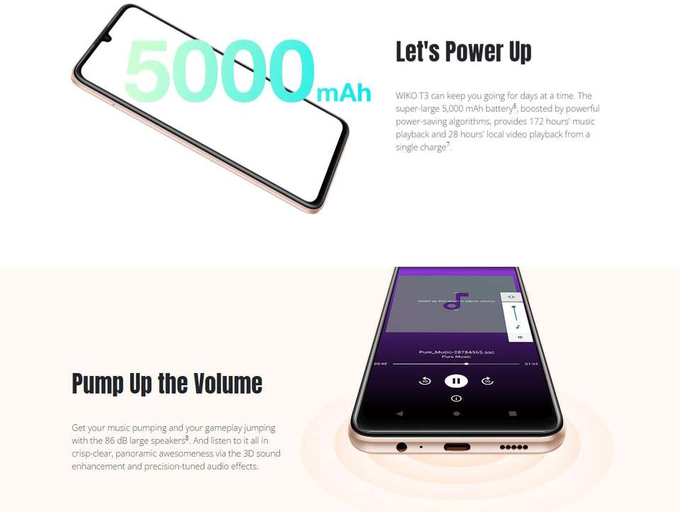 Wiko T3 6.6นิ้ว HD + Android 11 MT6765 OCTA-core 4 + 128GB 48MP ปลดล็อคด้วยลายนิ้วมือสมาร์ทโฟน4G