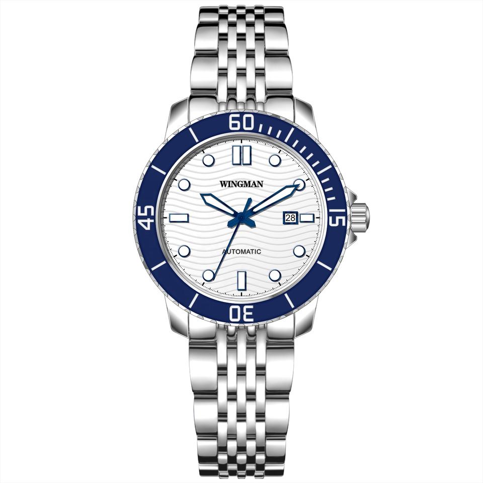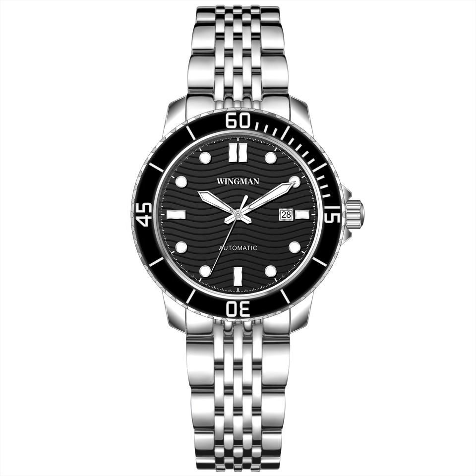 WINGMAN บุรุษสแตนเลสมิโยตะ ระบบอัตโนมัติ แฟชั่นธุรกิจ โลโก้ แบรนด์ญี่ปุ่น 2020 นาฬิกากันน้ำ สายขนาด 20 มม.