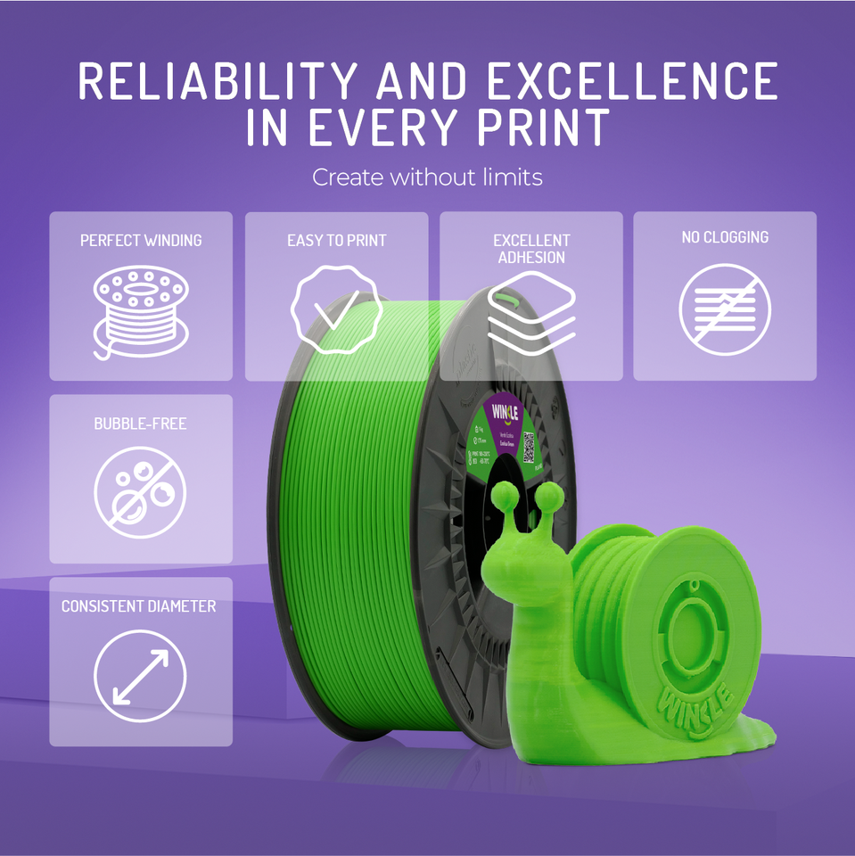 ไส้พิมพ์ 3 มิติ WINKLE PLA HD ขนาด 1.75 มม. น้ำหนัก 1 กก. สำหรับเครื่องพิมพ์ 3 มิติ ความแม่นยำสูง 0.05 มม. รองรับอุณหภูมิ 190-230 องศาเซลเซียส ย่อยสลายได้ พิมพ์ง่าย