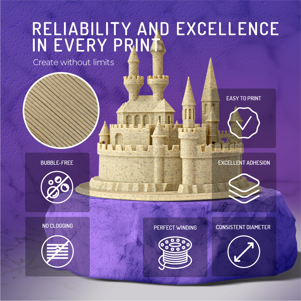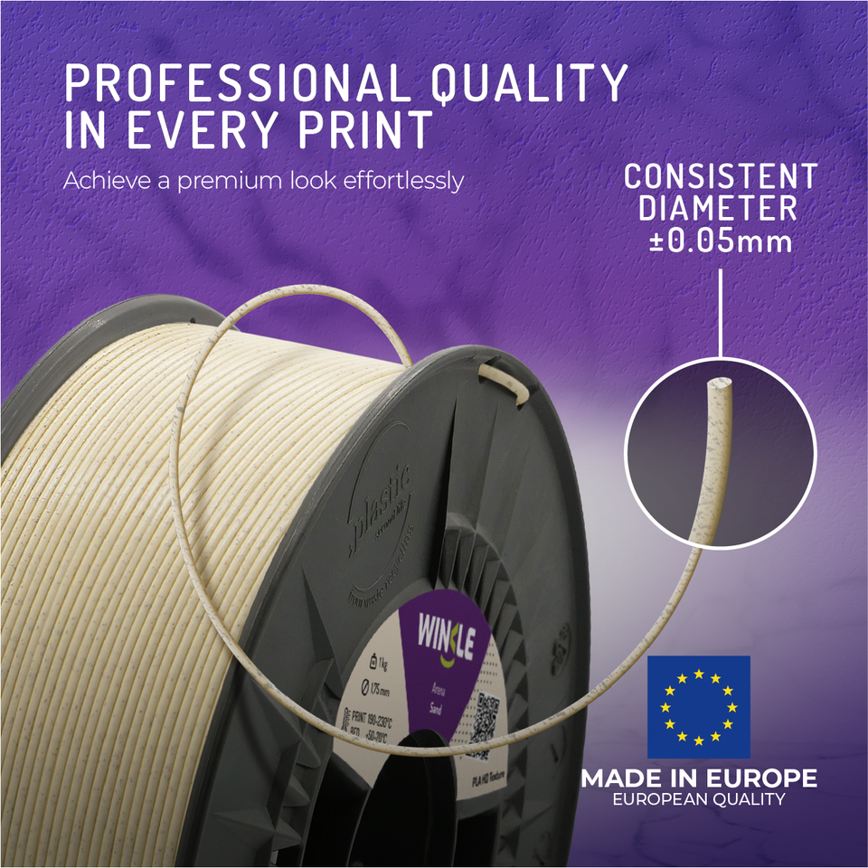ไส้พิมพ์ 3 มิติ WINKLE Sand PLA HD แบบมีผิวสัมผัส ขนาด 1.75 มม. น้ำหนัก 1 กก. คุณภาพมาตรฐานยุโรป ES ย่อยสลายได้ พิมพ์ง่าย ความแม่นยำสูง 190-230 องศา