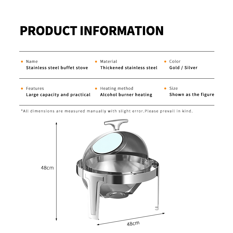 หม้ออุ่นอาหารสแตนเลสทรงกลมสีเงิน ยี่ห้อ WINNERS ใช้กับแอลกอฮอล์ สำหรับงานเลี้ยง งานแต่งงาน