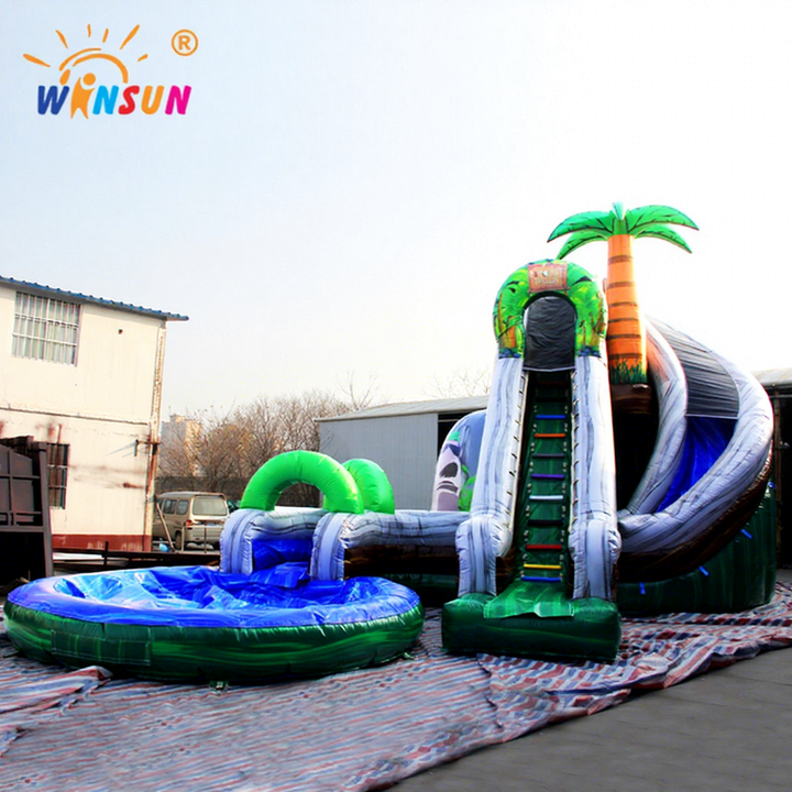 สไลเดอร์น้ำเป่าลมธีมทรอปิคอล WINSUN ลายต้นปาล์ม ได้รับมาตรฐาน CE ผลิตจากวัสดุ PVC ติดตั้งง่ายสำหรับผู้ใหญ่และเด็ก