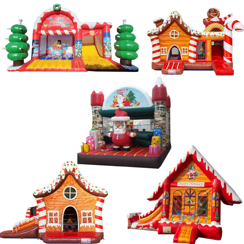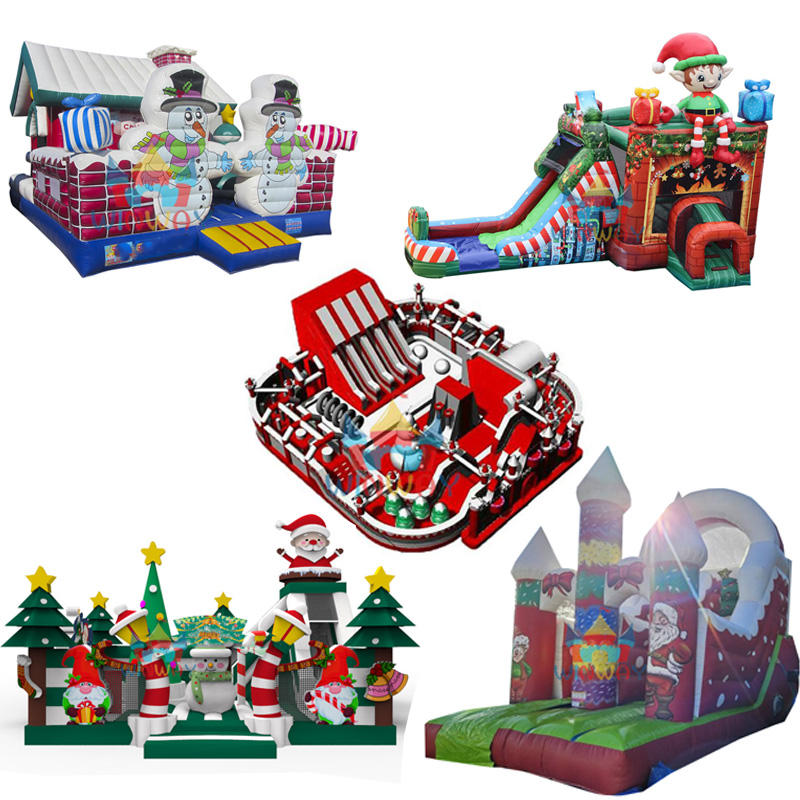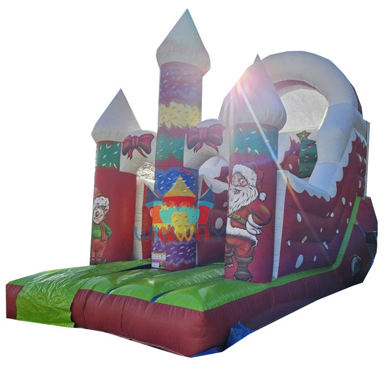 สไลเดอร์เป่าลมสำหรับงานปาร์ตี้คริสต์มาสเชิงพาณิชย์ WINWAYTOYS ชุดคอมโบปราสาทยักษ์ ตุ๊กตาหิมะ ต้นคริสต์มาสประดับไฟ วัสดุ PVC รองรับผู้เล่น 5-10 คน