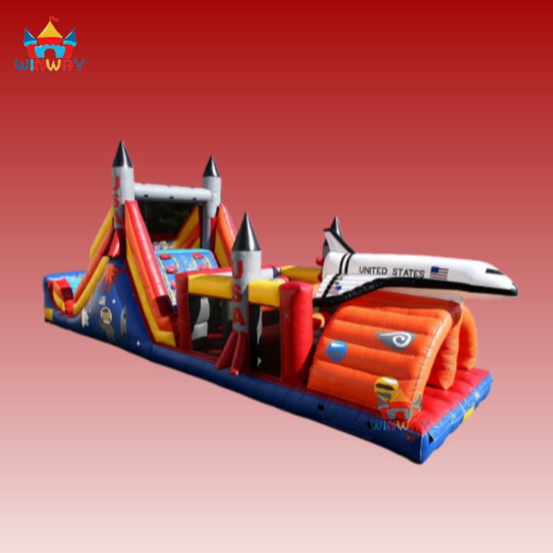 บริการเช่าบ้านลมเป่าลมธีมจรวดอวกาศพร้อมเครื่องเล่น Moonwalk จาก WINWAYTOYS ทำจาก PVC เพื่อความสนุกสนาน