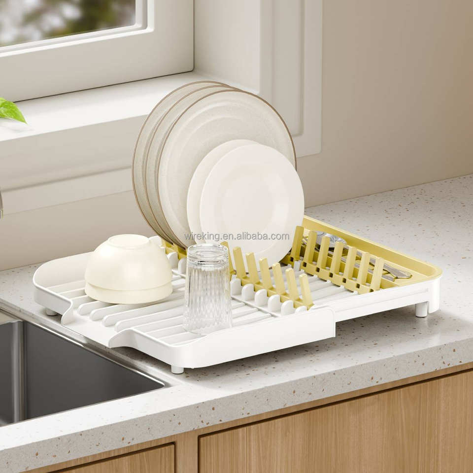 ที่คว่ำจานแบบยืดหดได้ WIREKING สำหรับวางเหนืออ่างล้างจาน ชั้นวางจาน อุปกรณ์จัดระเบียบห้องครัว