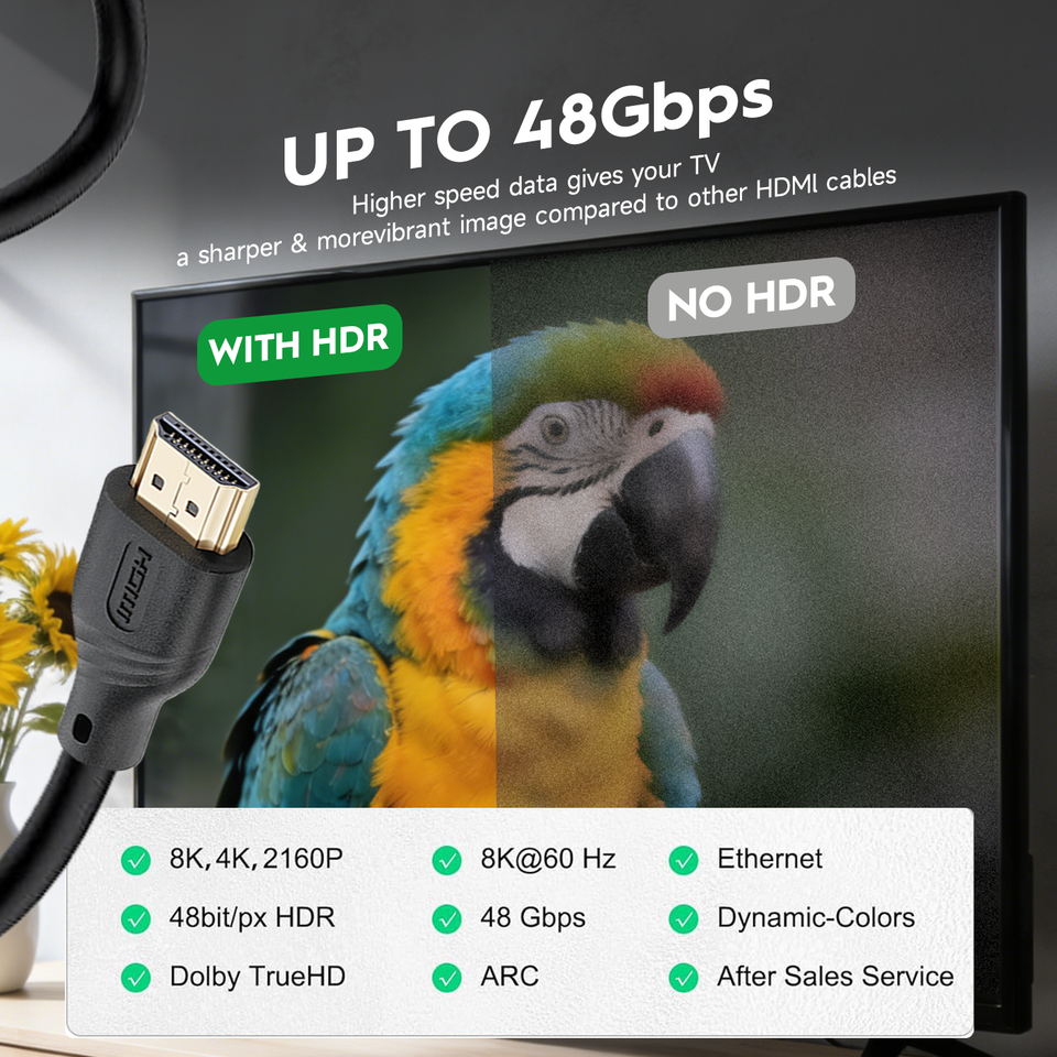 Wistar สาย HDMI 8K 60Hz HD Video 8K สายเคเบิล HDMI ชุบทอง PVC 8K