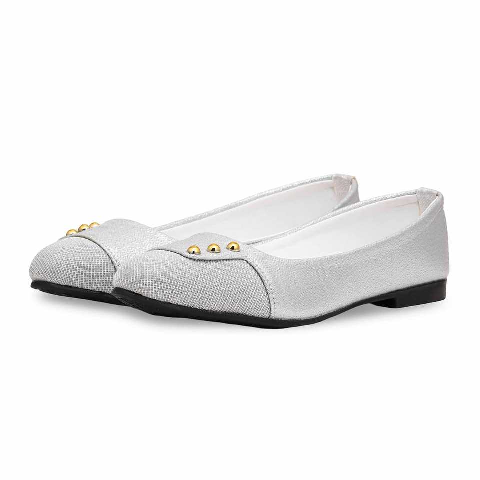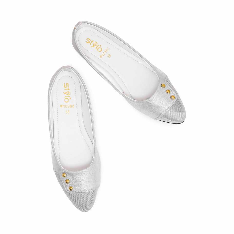 รองเท้าส้นเตี้ยสีเงิน WN0988