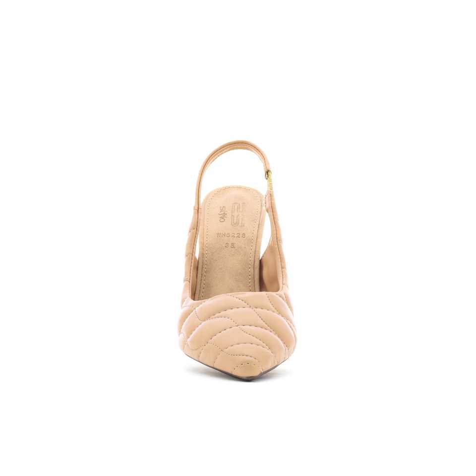 รองเท้าแตะส้นสีเบจ WN5228ที่มีการออกแบบเปิดหลัง