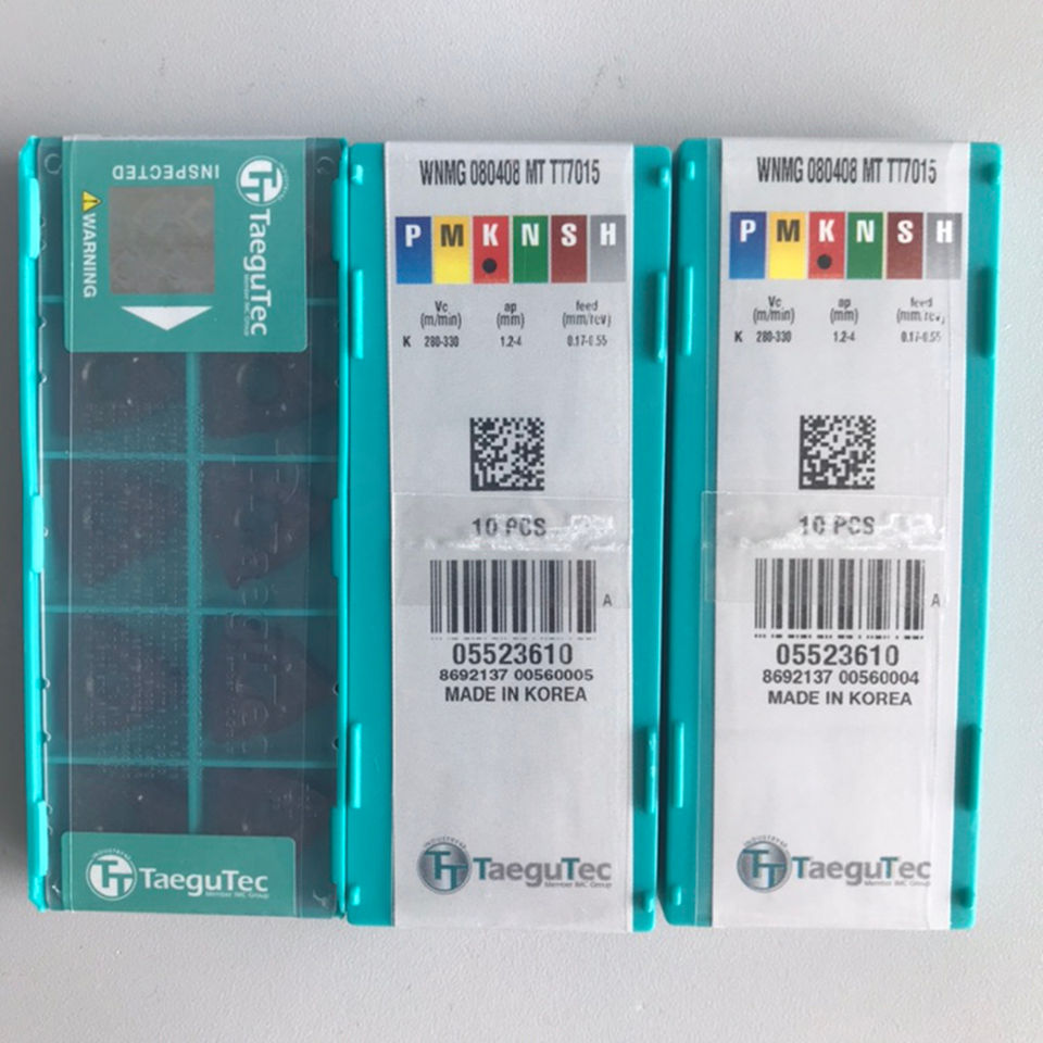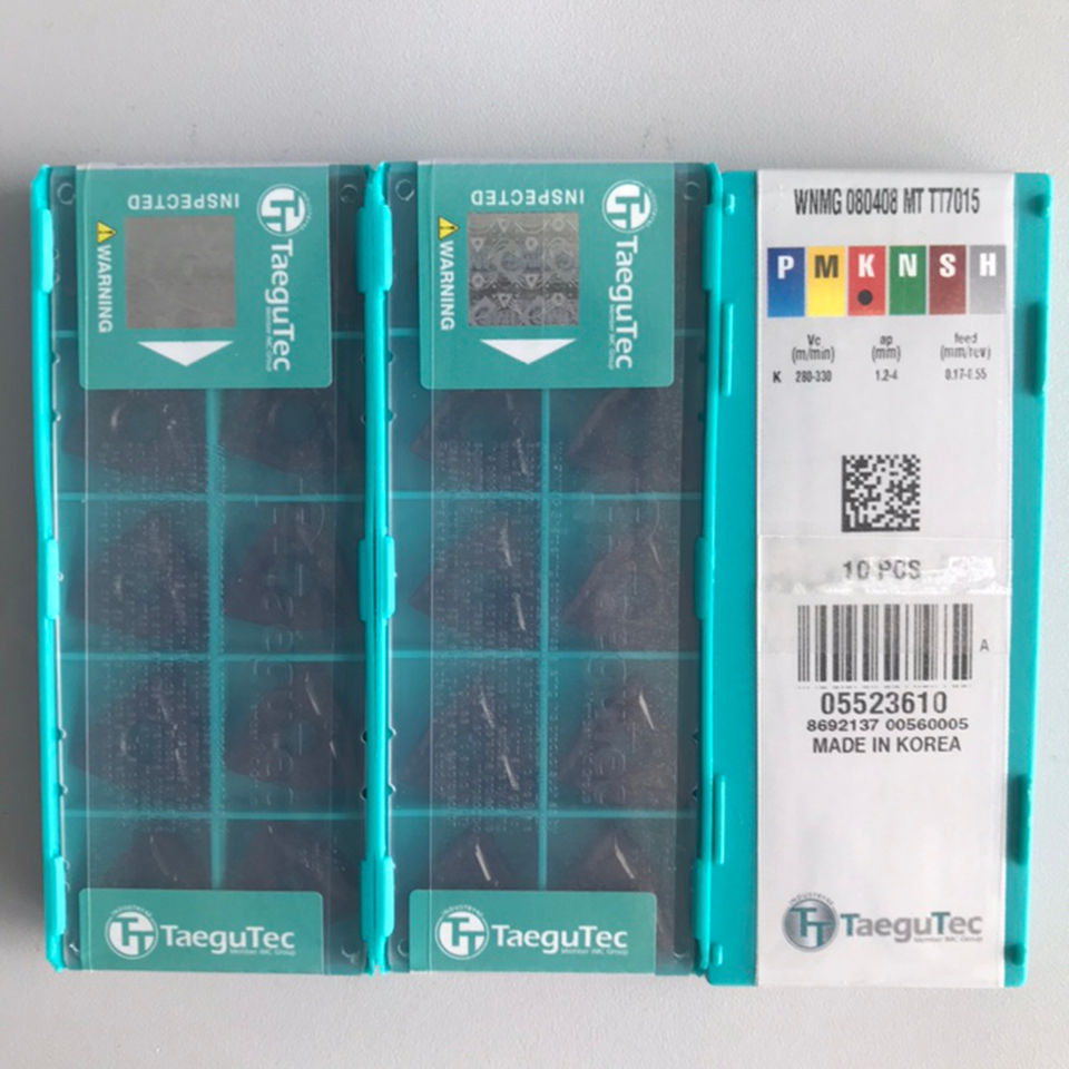 เม็ดมีดกลึง WNMG 080408 MT CT7015 ยี่ห้อ Taegutecs สำหรับเครื่องกลึง CNC ขนาดใบมีด 10 มม. ความหนา 1.5 มม. เคลือบ PCD ความแข็ง HRC65 ปรับแต่งได้ตามความต้องการ OEM คาร์ไบด์