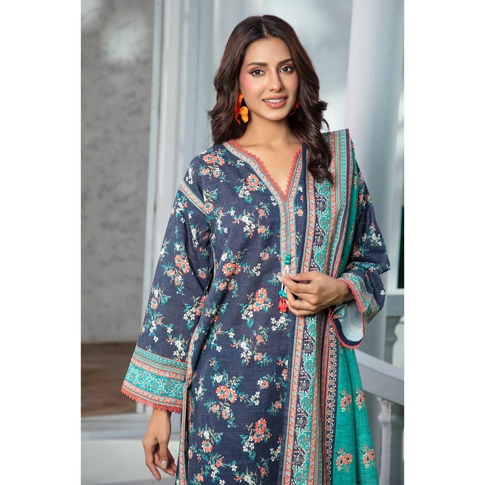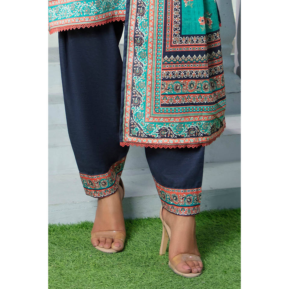 ชุดสัลวาร์ คามีซ ผ้าฝ้ายคัดดาร์ 3 ชิ้น รุ่น WNS-52096 พร้อมผ้าคลุมไหล่ สำหรับงานเทศกาลและชุดประจำชาติ สไตล์ปากีสถาน ชุดอินเดีย