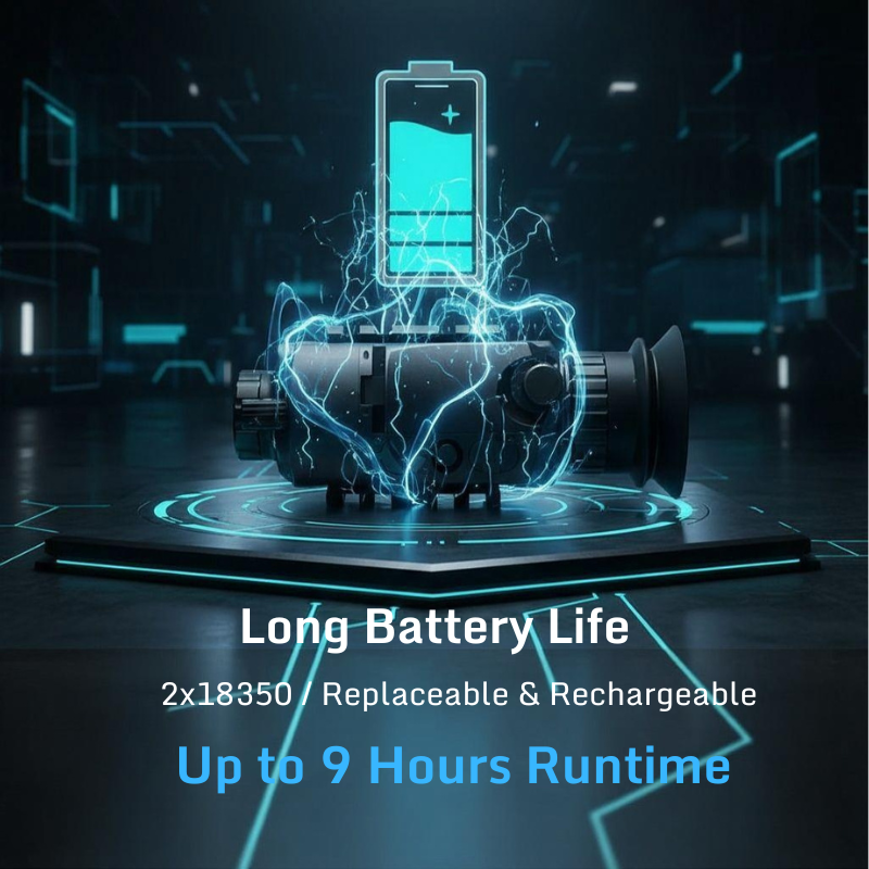 อายุการใช้งานแบตเตอรี่:9 ชม. @ ฐาน (เวลา 25℃) 2 x 18350 (2xCR123A เป็นอุปกรณ์เสริม)