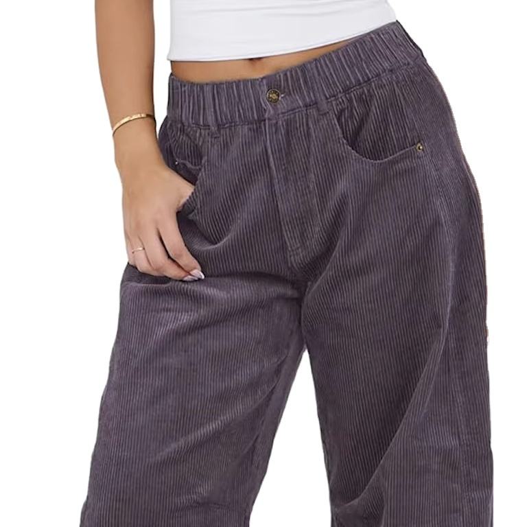 กางเกงยีนส์ทรงกระบอกเอวกลางผ้าคอร์ดสำหรับผู้หญิง ทรงหลวมขากว้าง ผ้าคอร์ดูรอย ขาสั้นระดับข้อเท้า มีกระเป๋า ผลิตในบังกลาเทศ สินค้ามาใหม่จากโรงงานโดยตรง