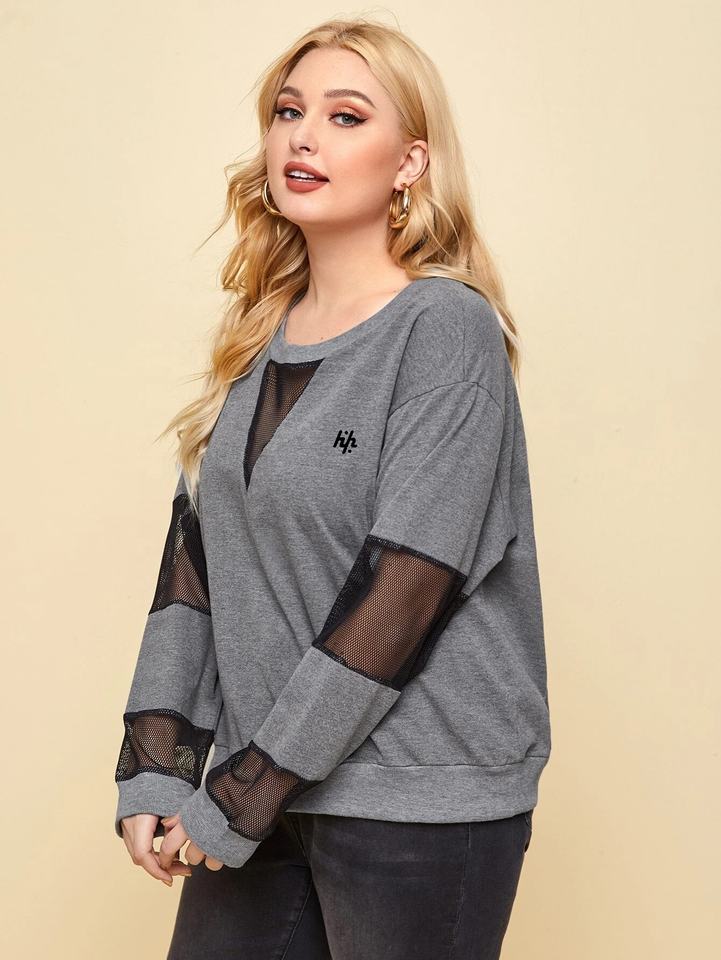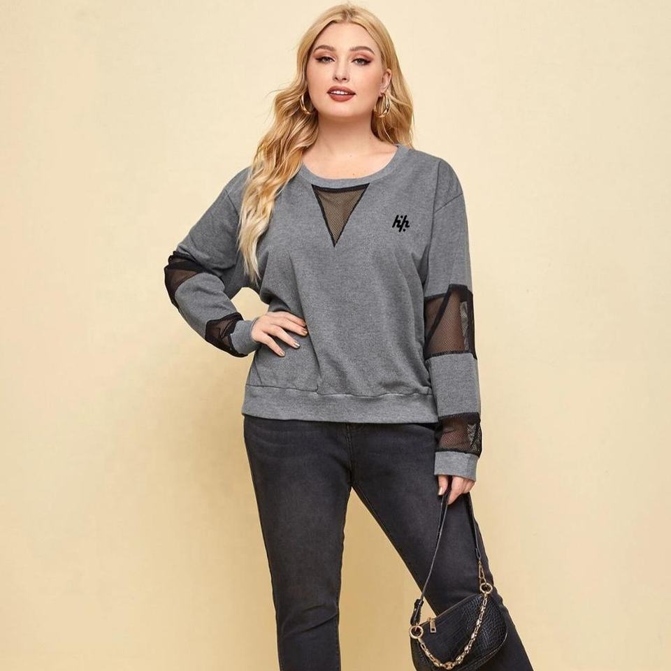 เสื้อสเวตเตอร์ตาข่ายสีตัดกันของผู้หญิงเสื้อสเวตเชิ้ตคอกลมแขนยาวเสื้อสเวตเชิ้ตผู้หญิง