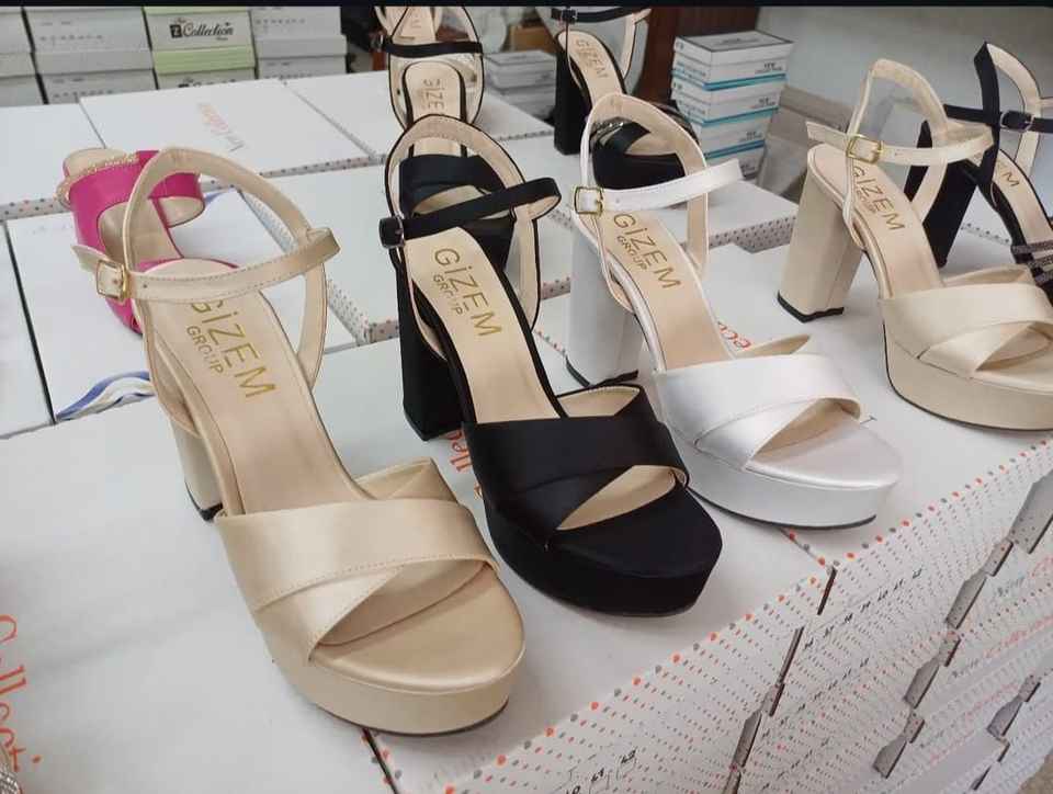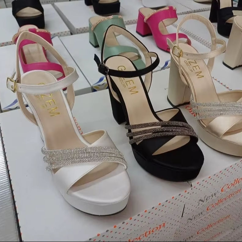 รองเท้าส้นสูงแบบรัดส้นสำหรับผู้หญิง มีทั้งแบบประดับเพชรและไม่ประดับเพชร สูง 8 ซม. ไซส์ 36-40 ผลิตในตุรกี