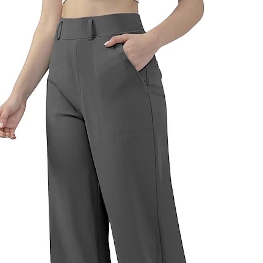 กางเกงทำงานทรงตรงขากว้างสไตล์ลำลองสำหรับผู้หญิง แบบสวม มีกระเป๋า จากโรงงานโดยตรง