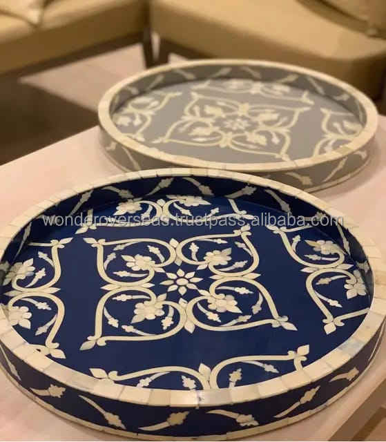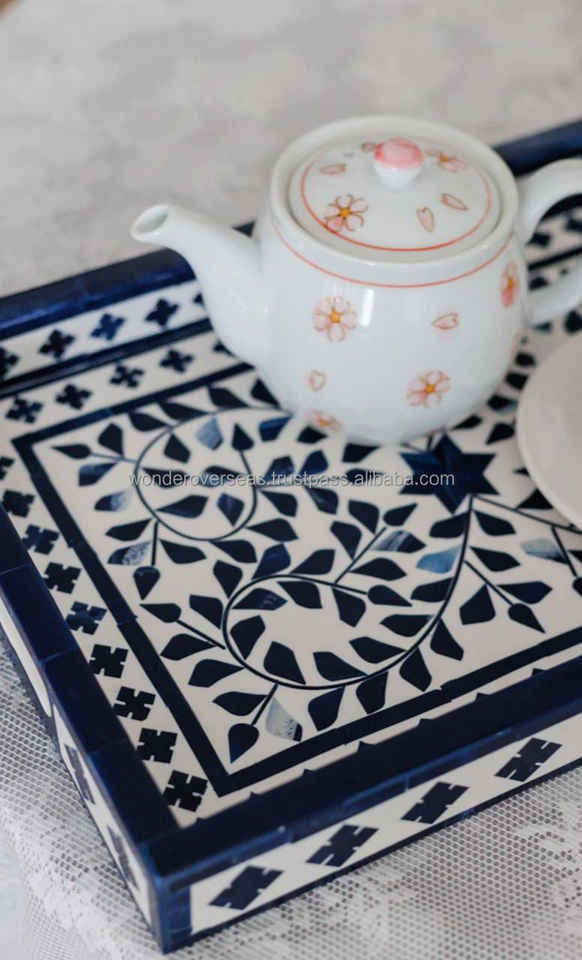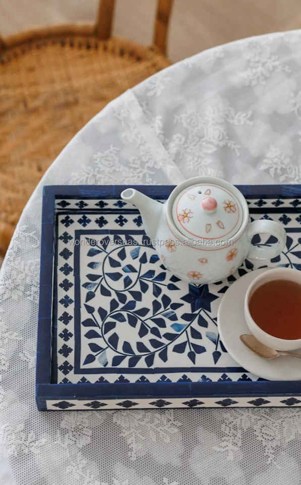 Wonder เซตถาดรองกระดูกทรงสี่เหลี่ยมผืนผ้าสีฟ้าและสีขาวทำจากชุด MDF 3ชิ้น