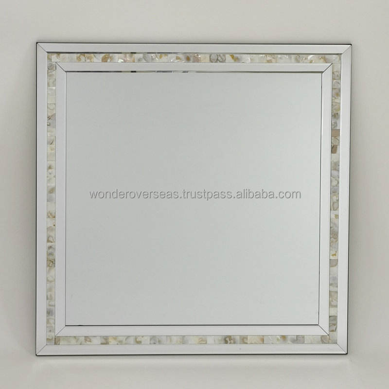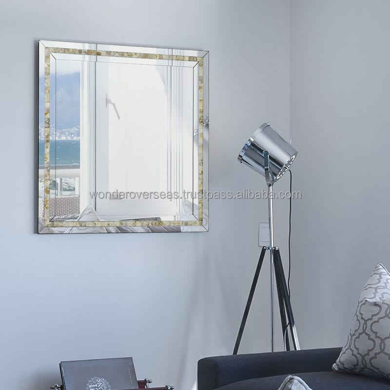 WONDER OVERSEAS Modern Fully Mirrored MOP Mother of Pearl Decorative Mirror One-Line Design Black Square for Hallway Wall Use