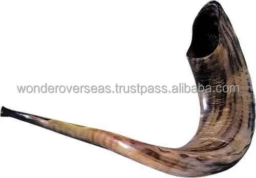 เครื่องดนตรีแบบดั้งเดิม โชฟาร์ ทำจากเขาแกะดำธรรมชาติ ขัดเงา ตกแต่งด้วยเปลือกหอย สไตล์ทางศาสนา