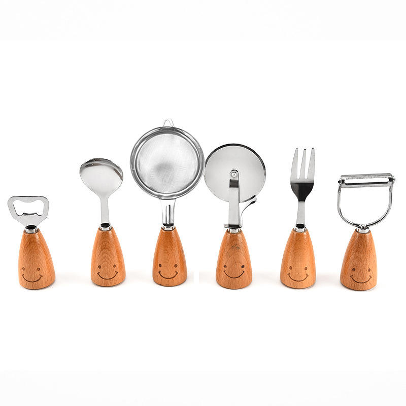 Short Wooden Handle Stainless Steel Kitchen Utensil Tools