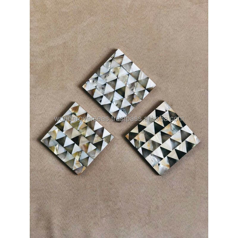 Wercoverseas แม่ของมุกชุดถาดรองแก้วเรซินฝังกระดูกเสื่อกาแฟชาวอลนัทแผ่นรองแก้วเรซิ่นฝังกระดูก Wondersต่างประเทศ