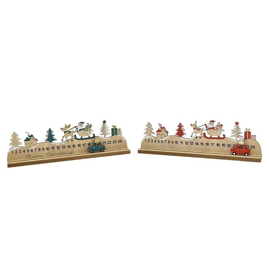 ปฏิทินไม้สำหรับนับถอยหลังวันคริสต์มาส รูปแบบภูมิทัศน์ พร้อมรถของเล่น ขนาด 40x12 ซม. สูง 5 ซม. แบบประกอบเอง