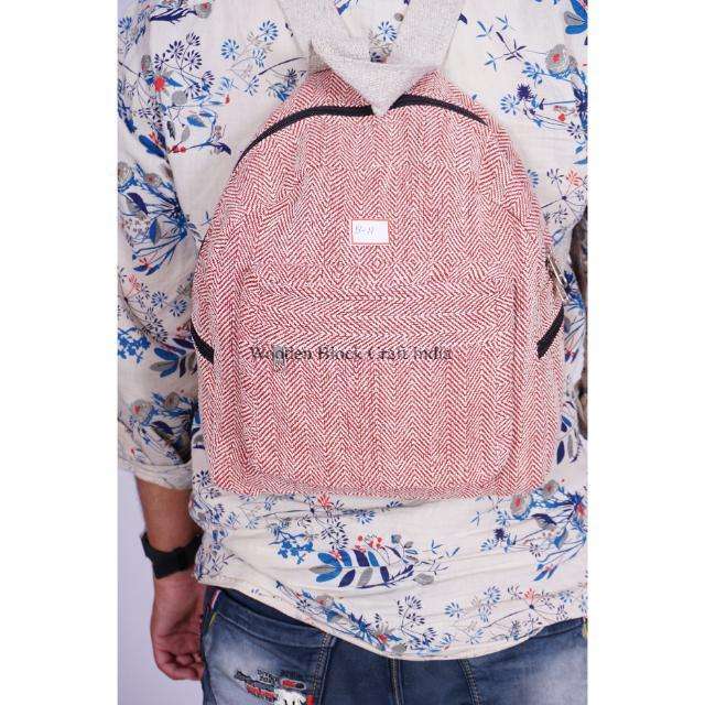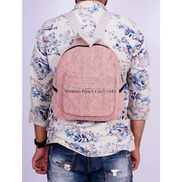 กระเป๋าเป้สะพายหลังผ้าฝ้ายน้ำหนักเบาสไตล์วินเทจจากอินเดีย ยี่ห้อ WOODEN BLOCK CRAFT ขนาดใหญ่ จุของได้เยอะ สายสะพายไหล่ใส่สบาย เหมาะสำหรับใช้ในชีวิตประจำวัน